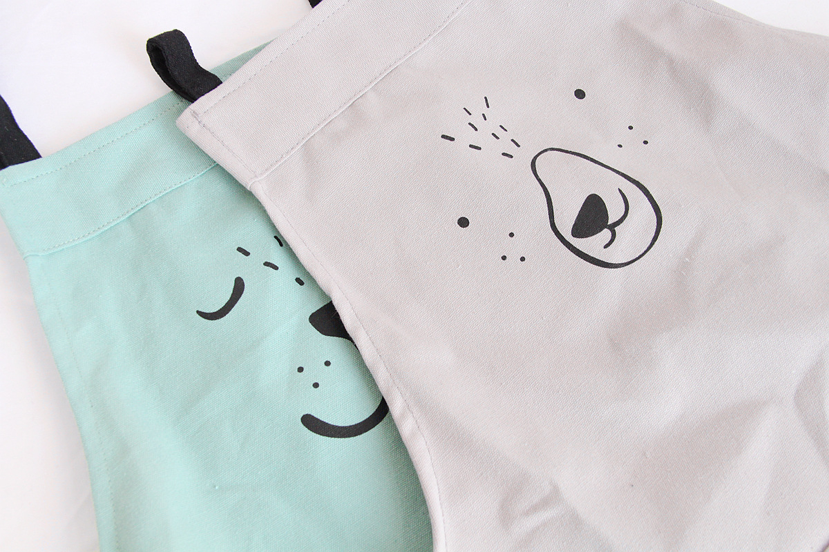 プリント柄が映えるカラフルなエプロン生地